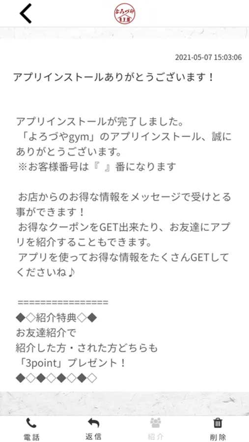 よろづやgymのアプリをSNSを通じてお友達に紹介する事ができます。