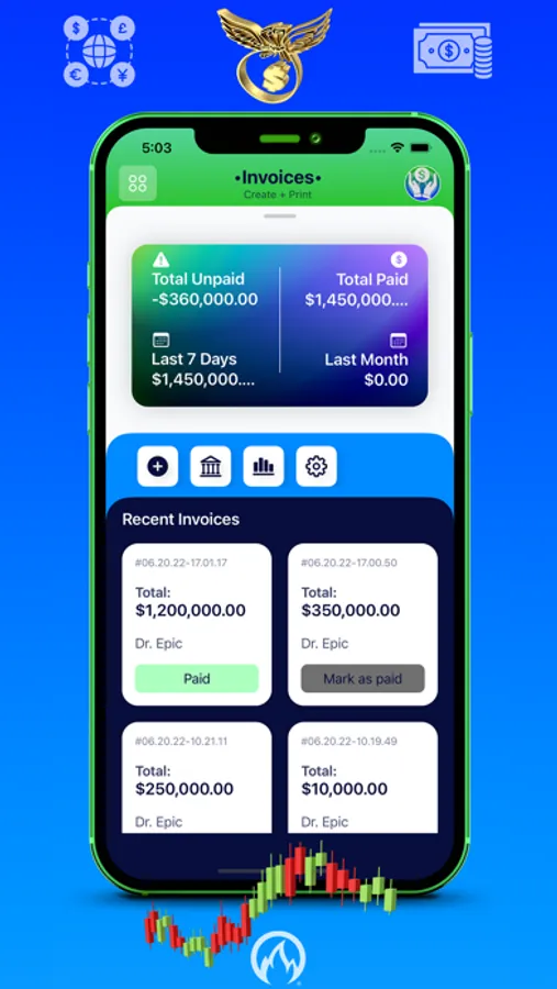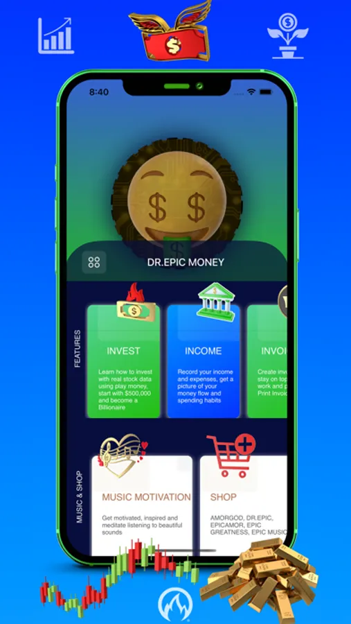 DR. EPIC will give you $500K ($500 Thousands or Half a Million of play money "not really money added to your bank account, but instead money used in the App only" for learning purposes)