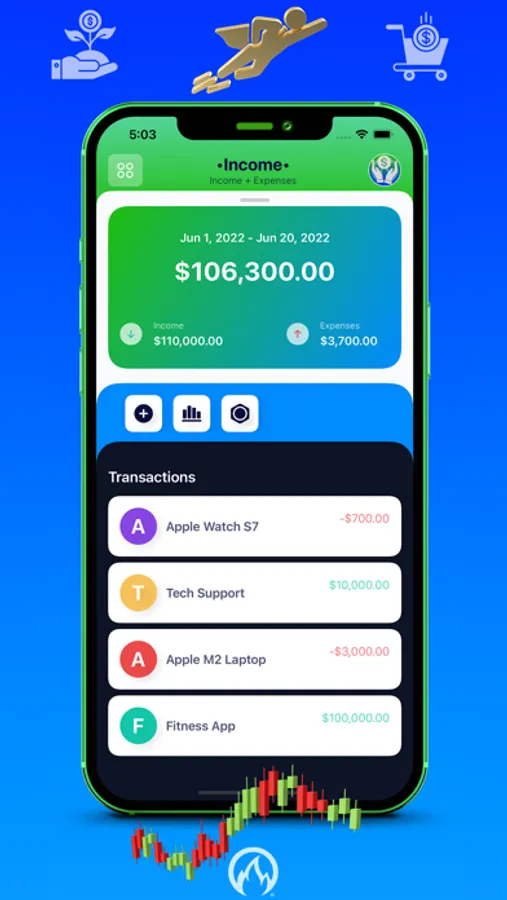 Record your Income & Expenses, get a better picture of your money flow and spending habits