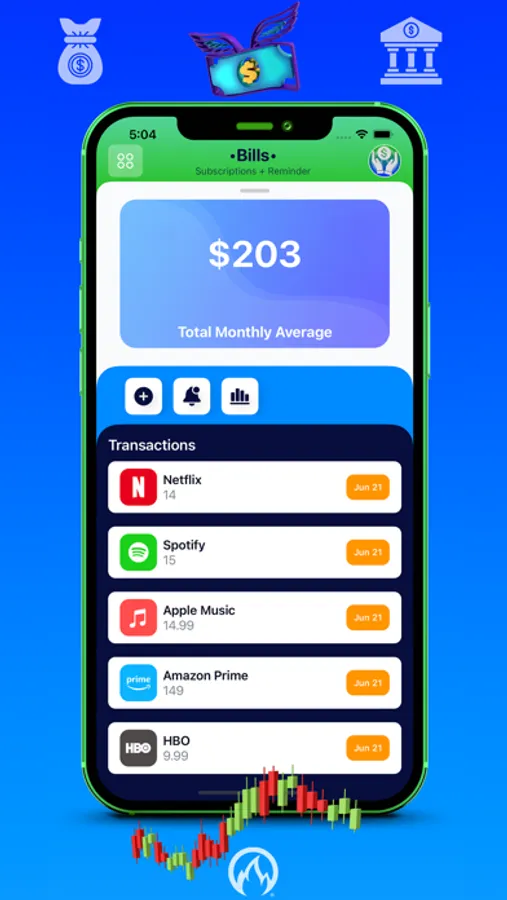 Add your monthly bills, get reminders when your payments are due, see how much you’re spending on your monthly bills