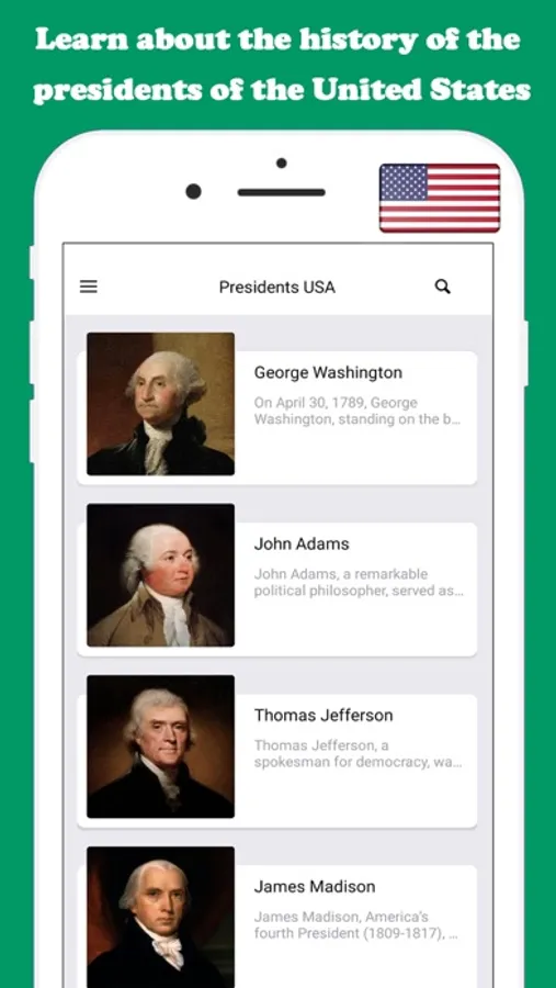Download your app Presidents History use and know the history of all the presidents of the United States.