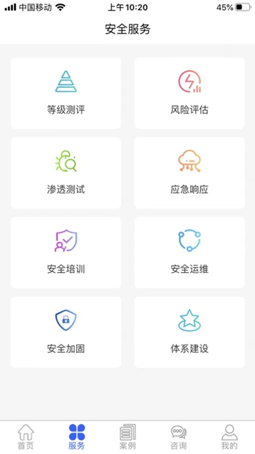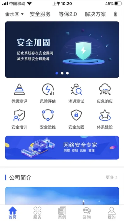 宝通测评APP主要是对公司业务、案例的宣传介绍,宝通测评是一家专注于网络安全等级保护测评和信息安全整体解决方案的综合服务运营商,主要业务有等级测评、风险评估、渗透测试、应急响应、安全培训、安全运维、安全加固、体系建设