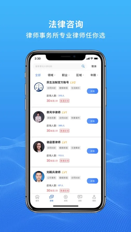 3、【律师咨询】民生法制平台提供一站式一对一法律咨询服务,用户可以在隐私受保护的情况下向自己心仪的律师进行高效准确的法律咨询,解决自身法律困境。
