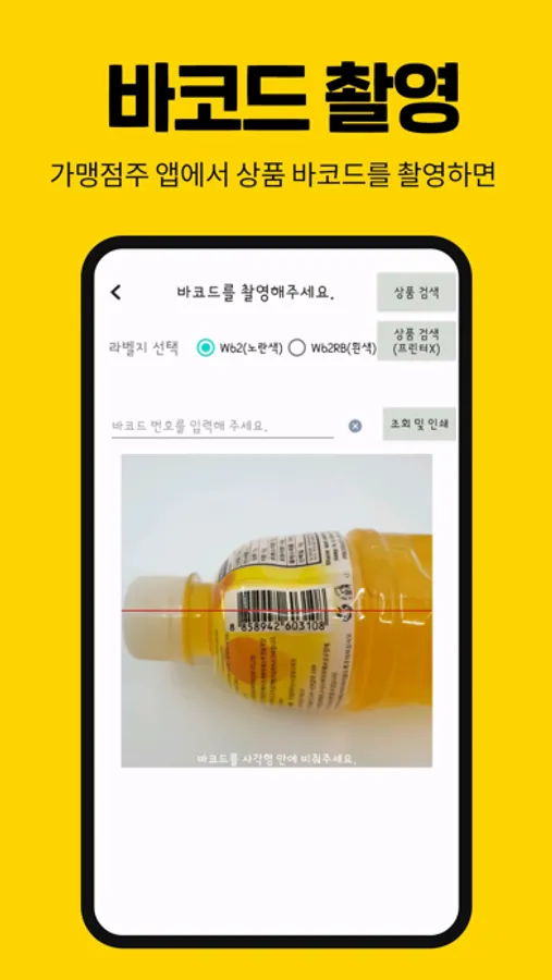 - 모바일 촬영 기능을 통한 바코드를 인식하여 라벨을 프린트