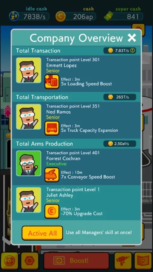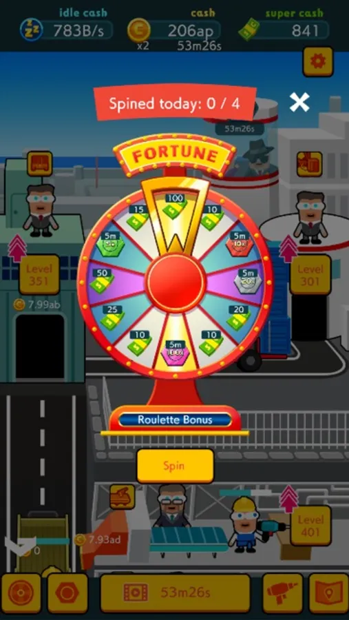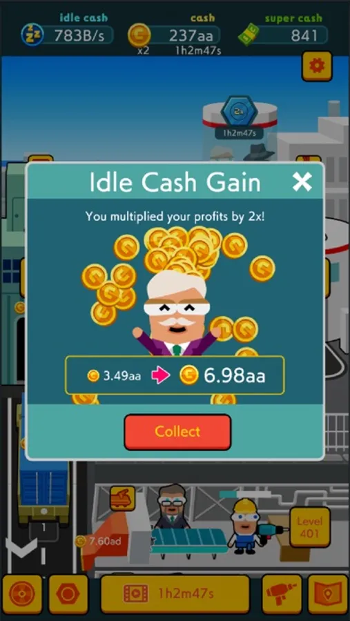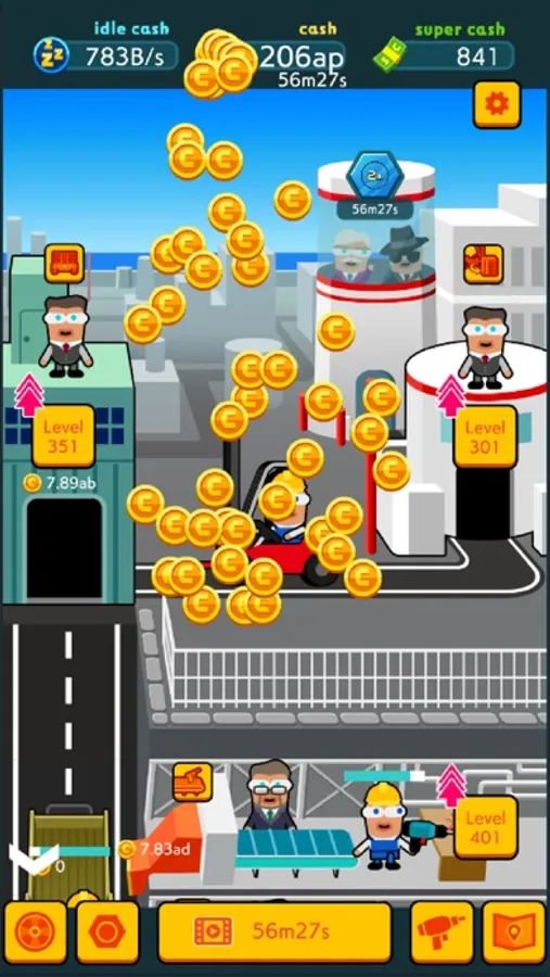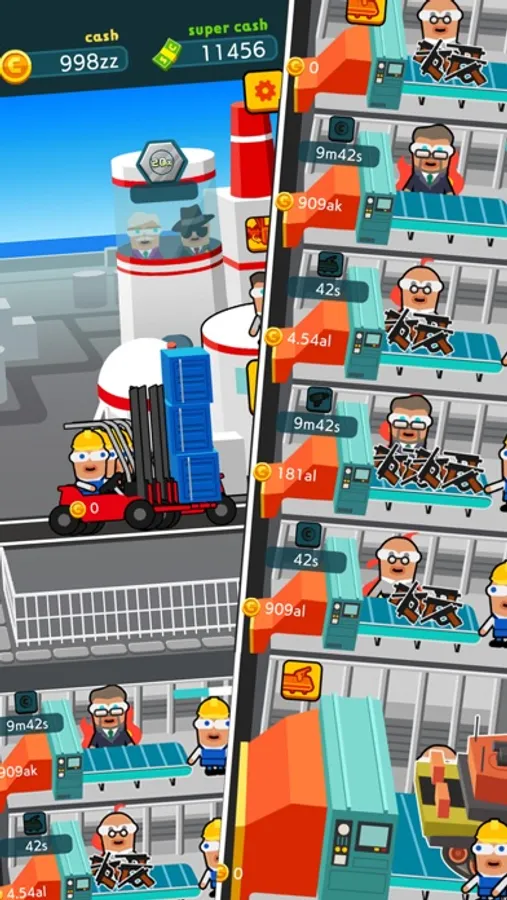 Level up factories in spare time to boost your idle income.