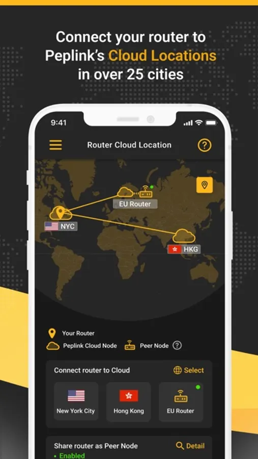 Connect your router to a maximum of 3 Cloud Locations in over 25 cities to protect your connection