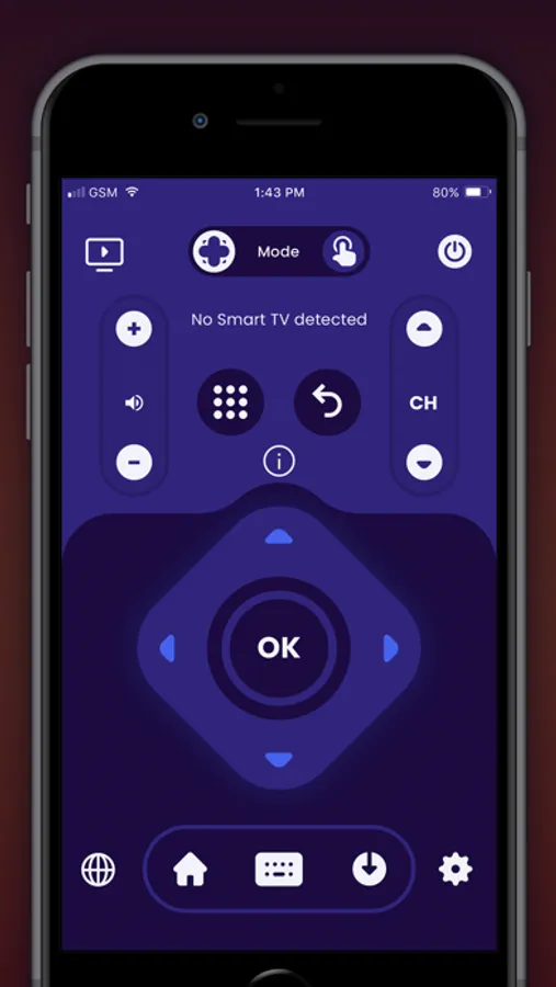 "SMART RUKO TV REMOTE CONTROL" has all the necessary buttons that a TV remote usually has, moreover there is a keyboard and a touchpad.