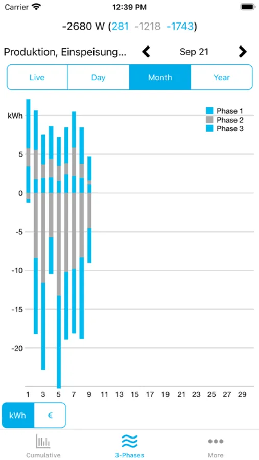 Die Wochen- und Monatsansicht zeigt den Verbrauch über längere Zeiträume – Sie erkennen Trends und „Ausreißer“.
