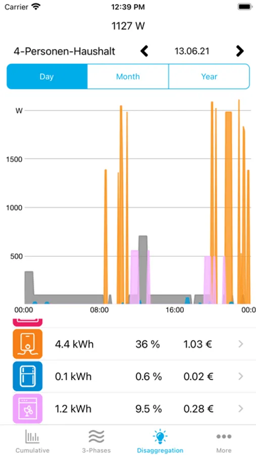 Mit der Live-Ansicht können Sie durch Ein-Ausschalten von Geräten mögliche Stromfresser ad hoc identifizieren.