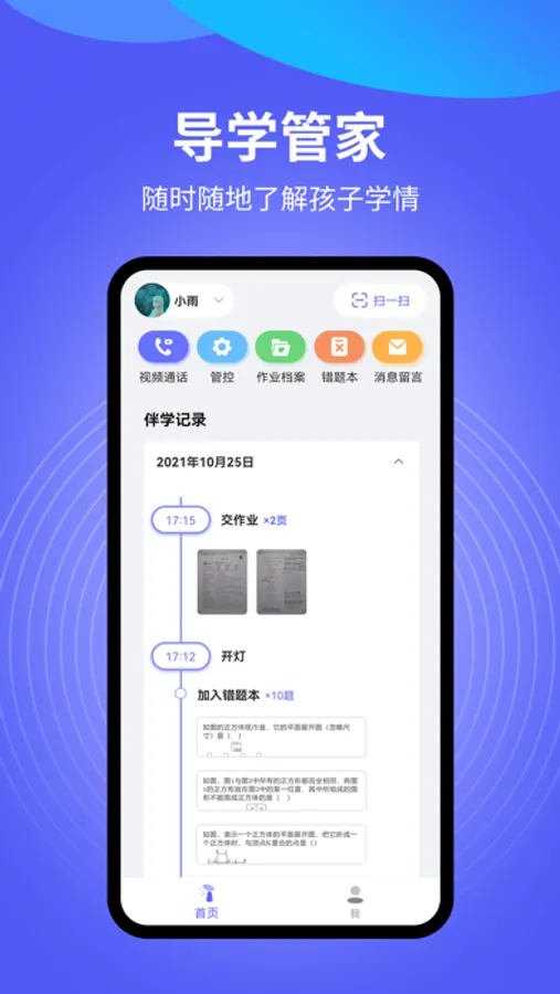 导学管家是导学教育旗下的一款快捷检查作业的教育工具类软件, 配合导学号作业辅导灯的使用, 让家长随时随地辅导孩子作业,帮助孩子养成良好的学习习惯,解决家长辅导孩子作业的一大难题。系统提供智能辅导及作业批改功能习题配有解题思路,详解、反思、拓展、微课等"五步"辅导信息。