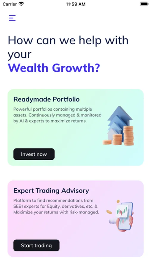 An AI-enabled app to plan, manage finances, and diversify investments for millennials across Stocks, ETFs, Mutual Funds, Digital Gold, Tax saving funds with just one single click with partner trading ecosystem. One place for Advisory to Execution with ecosystem partners