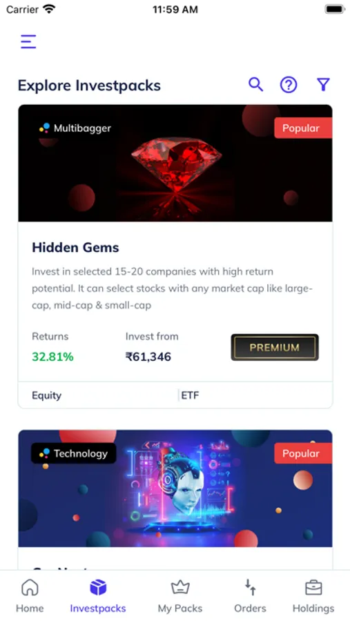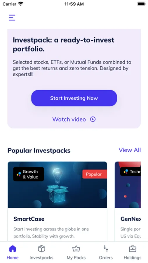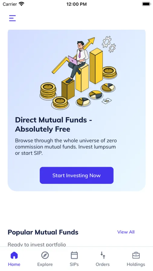 Invest in curated personalized portfolios of Direct Mutual Funds, Equities, ETFs, Gold, etc. in a single click. Maintain and manage all your purchases in one place with ecosystem trading partners.