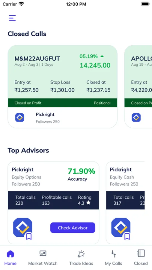 Users can directly subscribe to any SEBI advisors and get share market recommendations in the mobile app. The platform is powered with intelligence to track and monitor all the stock market advice in real-time and helping the investors to maximize their gains and minimize the losses. Pickright’s AI creates a dynamic ranking scorecard for all Advisors and AI bots on the platform based on the current and past history thus helping Investors to choose the best advisor for all their financial needs for just a fraction of the cost.