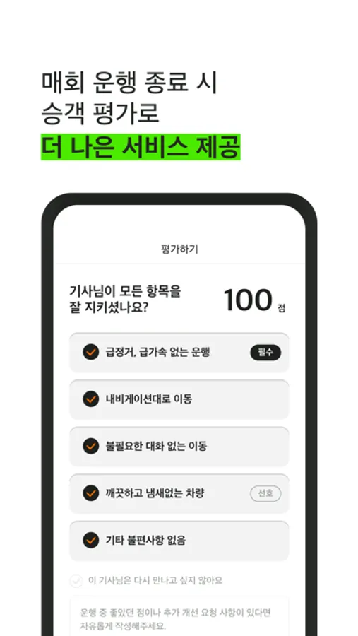 조용히 이동하고 싶을 때, 급정거/급가속이 싫을 때, 내비게이션의 안내에 따라 이동하고 싶을 때, 운행 선호 사항을 등록하면 더 편안한 이동이 가능합니다.