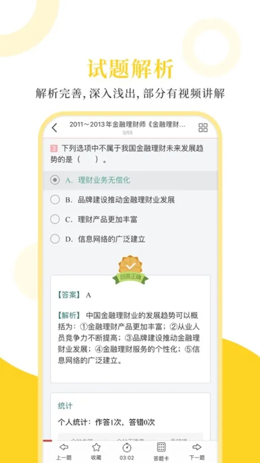 专为金融理财师和国际金融理财师考试精心准备的考试配套题库,每一道试题都有答案解析,为考试提供了充分的复习准备,可随时随地学习练习,支持手机、平板多端同时使用。