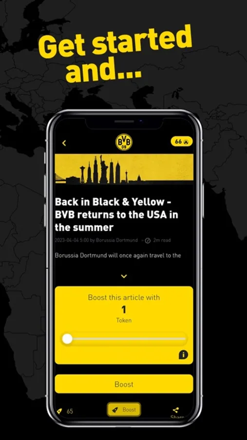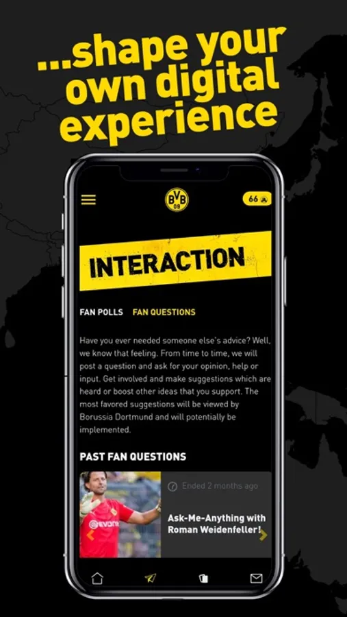 Fan-Engagement is the focus of the app. BVB-Tokens enable you to interact with each other, the club and to support ideas, content, and comments you enjoy. The more you collect, the more you can participate and interact.