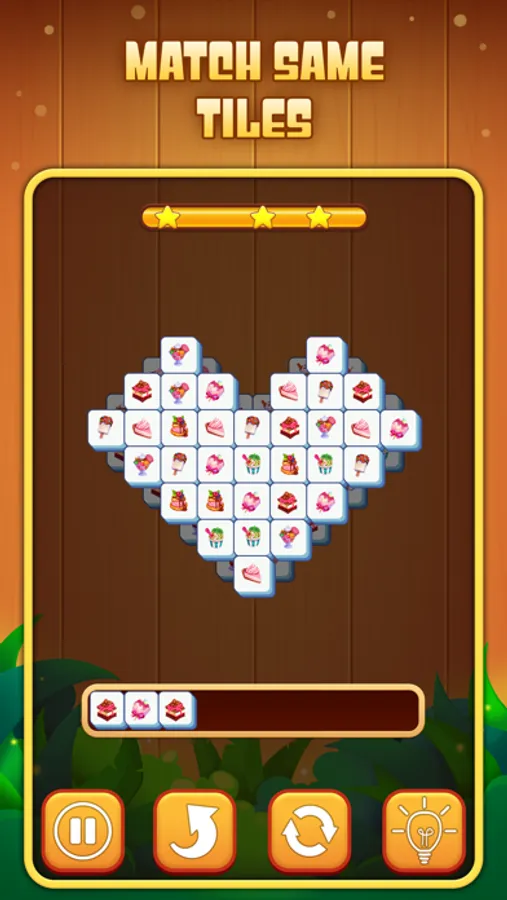 - Three same tiles will be removed from the board. Clear all tiles as soon as possible.