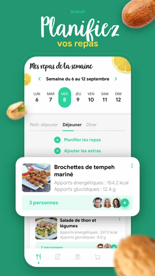 L’application qui s’adapte aux besoins réels des membres du foyer. Planifiez vos repas, suivez l’équilibre, gagnez du temps, performez votre santé, réduisez le gaspillage.
