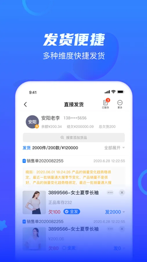 2、档口、仓库权限分离,档口管钱,仓库管货;