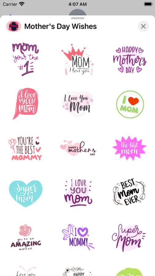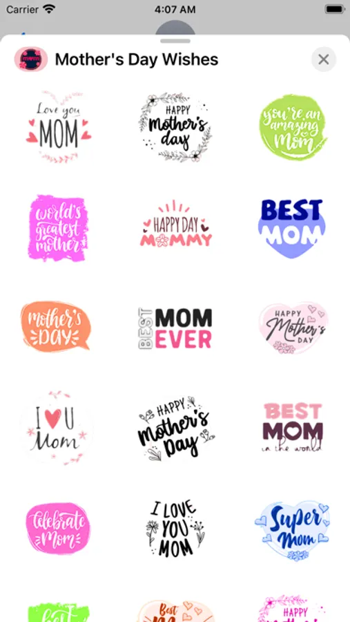 Decorate your Messages and Photos with this lovely pack of Stickers! Improve your conversations and send some Happy Mother's Day Wishes Stickers to your friends and family!