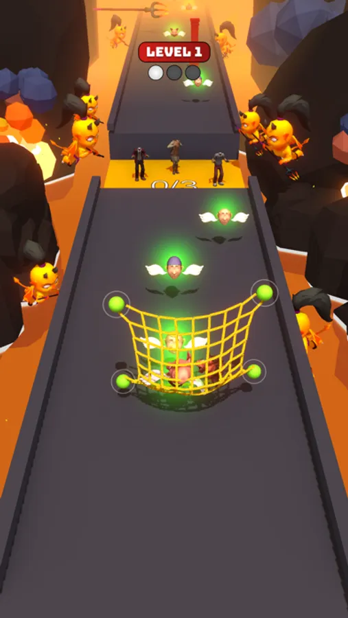 Move your net left to right to collect the heads, watch out for spikes and traps on your way: they can tear a hole right through you.
