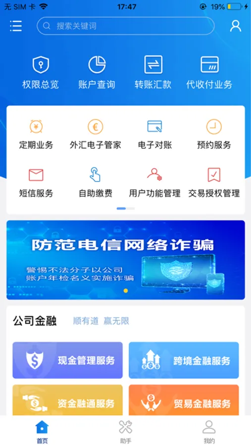 1.以企业日常使用的金融场景为基础,升级优化账户管理、支付结算、投资理财、国际业务等基础金融服务。