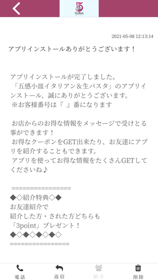 五感 西荻窪のアプリをSNSを通じてお友達に紹介する事ができます。
