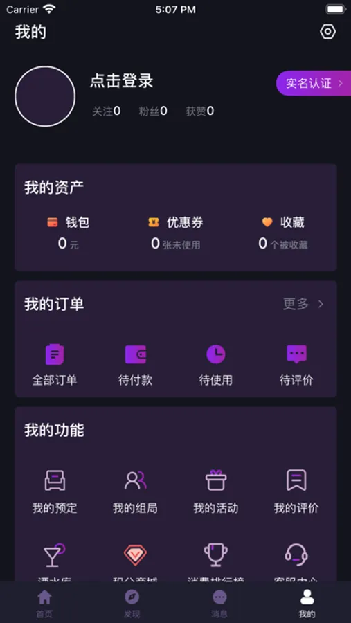 核心功能 在线预订、同城组局,订单管理,社交平台,活动策划,积分兑换。