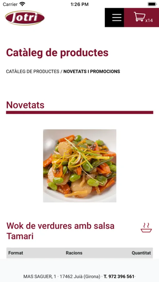 - Veure tots els productes de Cuinats Jotri disponibles i els seus formats.