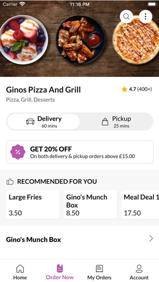 Unleash your taste buds with Ginos Pizza And Grill, delivering delicious meals right to your door. Our app makes ordering simple and fast. Explore our menu, build your perfect meal, and check out securely. Whether you prefer to pay by cash or card, we've got you covered.