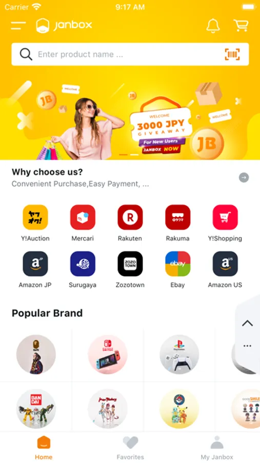 Janbox has integrated 10.000+ Japanese & American shopping websites such as Amazon, eBay, Yahoo Auctions, Rakuten, Mercari, Rakuma, and Yahoo shopping... into one Janbox platform to help users experient the easiest, simplest, and fastest online shopping. Let’s stay at home and order your favorite item, Janbox will buy it and ship it directly to your hand.