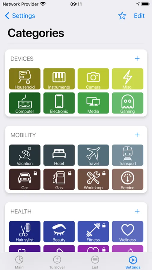 LiveBudget comes pre-installed with eight groups, each with eight categories which can be changed, added or deleted anytime. Customise the app entirely according to your personal needs.