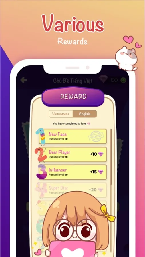 The purpose of the game is not only to relax but also to help players increase their reasoning ability, supplement the missing knowledge in order to fill their own dictionary.