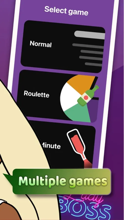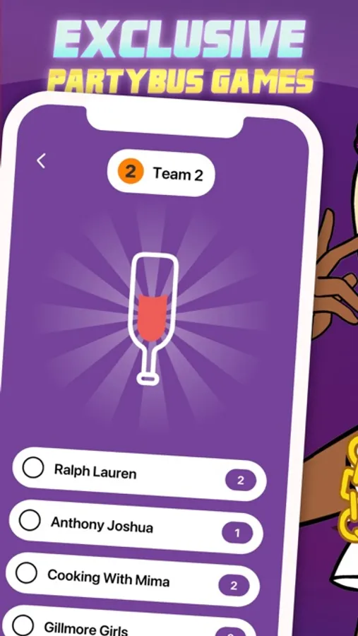 Partybus involves several games. Each game features multiple levels, ranging from a basic Warming Up to more challenging levels like "Never Have I Ever", "Truth or Dare" or "Most Likely To Tag". Play one versus one, or team up.