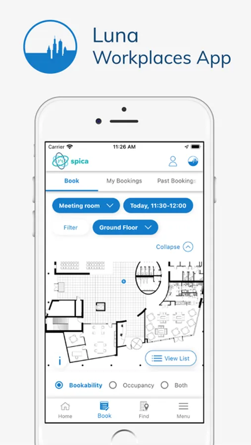 Tired of getting lost in your workplace? Hunting through the entire office to find that meeting room you’ve never been to before? This problem is a thing of the past thanks to the Find module! Search for the resource you’re looking for, select it from the list or map, and Spica Luna provides directions from your current location. Choosing a resource on the Find map even shows you its availability, amenities, and environmental conditions based on IoT sensors installed in the office!