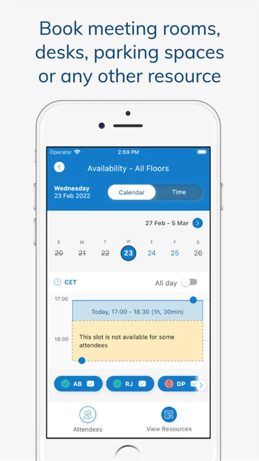 The Book module shows you availability for all bookable resources in your workplace – say goodbye to wandering the halls looking for an open meeting room or struggling to find a hot desk to plant yourself for the day! Choose your resource (desk, meeting room, parking space or more), and we’ll show you what’s available for that time. We'll even recommend alternative times or resources if there is nothing available. And now, when you book a meeting room or breakout space, you can create an online meeting and invite your colleagues, whether they’re in the office or not, allowing you to choose a time based on their availability.