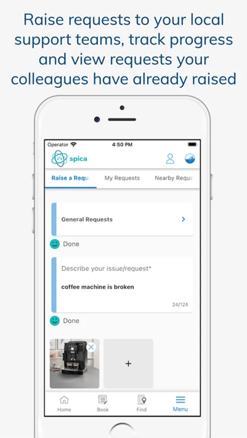 Have you noticed a defect in your workplace? A leaking pipe, a bathroom that has run out of soap, a printer that’s on the fritz? Using the Support module you can raise a request with the local facilities team and check progress until it’s eventually resolved. You can even drop a pin on the map to locate the defect, in case there’s a leak in the middle of a floor.