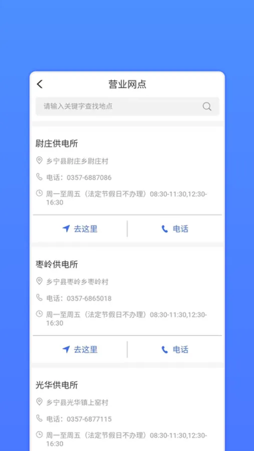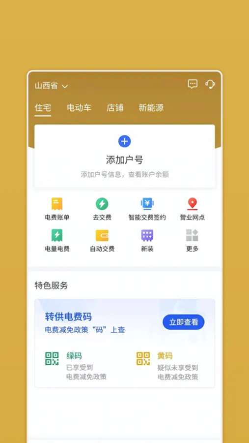 缴费、业扩报装、电费电量查询、宣传信息展示、停电公告查询、发送停电公告、预约校表、找充电桩、意见反馈等功能。