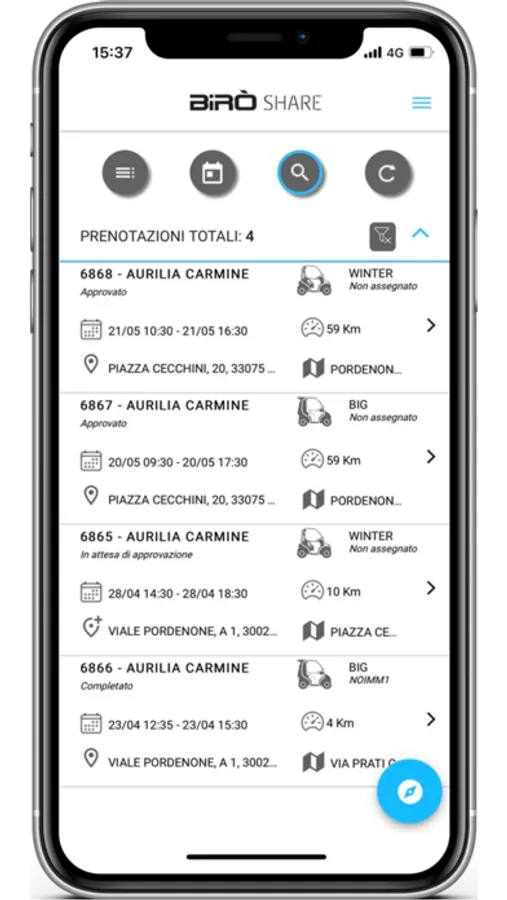 Con la BiròKey controlli lo stato di carica, la posizione del veicolo e chi lo sta utilizzando mentre con la BiròFleet gestisci i tuoi Birò in totale sicurezza.
