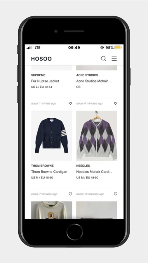 Based on intuitive applications and websites, HOSOO strives to create a new business model for the used market, including a sensuous brand lineup, elimination of false offerings, and thorough delivery management.