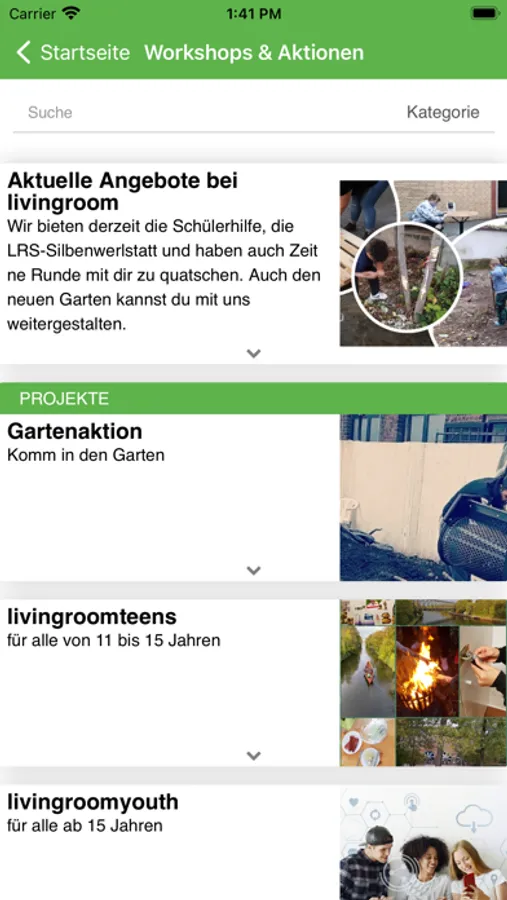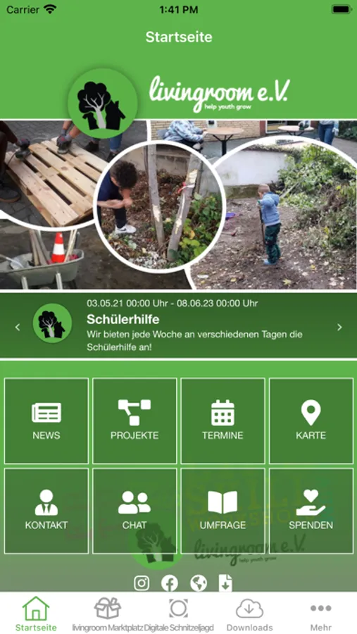 Ihnen als Interessierte an der Vereinsarbeit bietet die App umfangreiche und aktuelle Informationen über die unterschiedlichen Angebote von livingroom und natürlich können auch Sie mit uns in Kontakt treten.