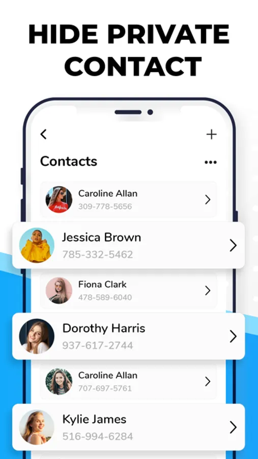 There might be some private contacts are in your contact directory. Safe locker will allows you to hide your personal contacts or create new contacts from the private contact directory. Create a list of confidential contacts by adding manually OR importing from contact book.