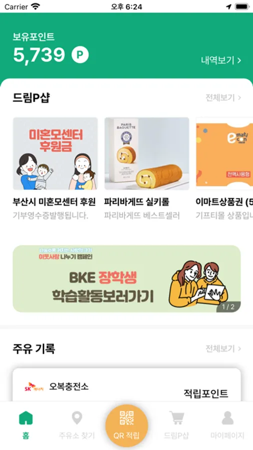 새로운 주유 마일리지 어플리케이션 “드림 포인트” 어플리케이션 출시되었습니다! 별도 적립 카드 휴대가 필요없이 BKE그룹 영업소에서 QR 스캔을 통해 포인트 적립이 가능하며, 다양한 이벤트 혜택을 언제 어디서나 즐길 수 있습니다.