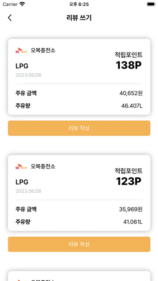 3. 주유 기록부 : 기간별 주유량, 금액 등 주유 적립 이력 확인 가능