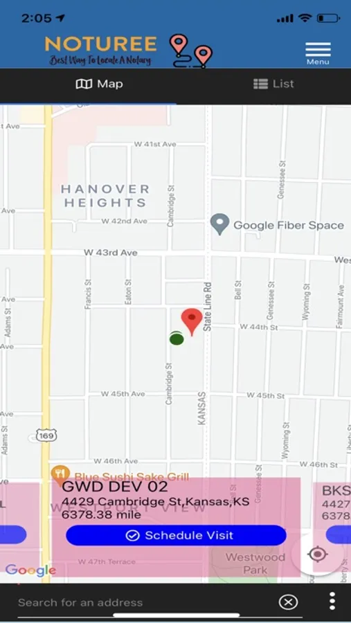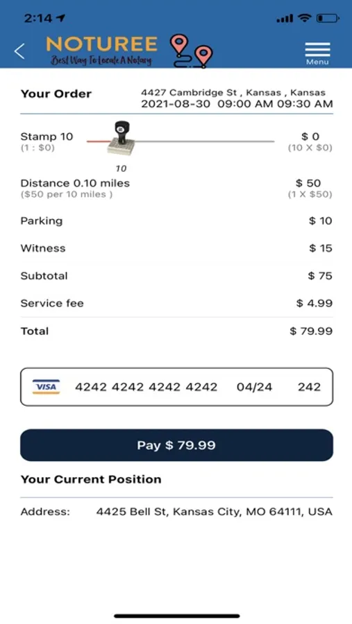 The user must inform the app of their current location in order to obtain the distance between the notaries or to conclude a contract with the notaries. To do this, the user has the option of allowing the app to use the phone's Location Service to automatically point out the location, or manually point and set the location on the map.