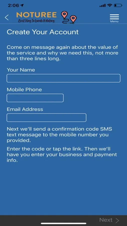 Notaries enter the necessary information to register in the app and get approval from the administrator.