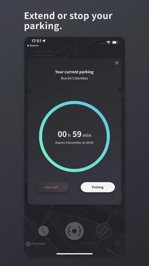 • Extend/shorten your parking session and get automatic reminders before it ends.