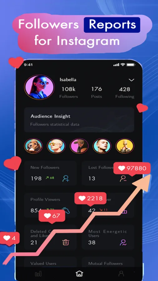 Followers Track Reports+ is the most accurate Instagram analyzer which can offer you the detailed data of posts analysis and followers interactions and the comprehensive report of the increasing trend of your followers. You can not only get the deeper understanding of the account data but also many secrets hidden in the Instagram.