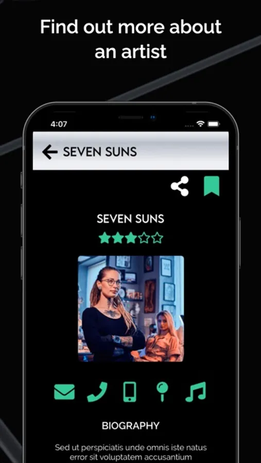 - Share options: You can share the app or a specific artist with social media or to your contacts.