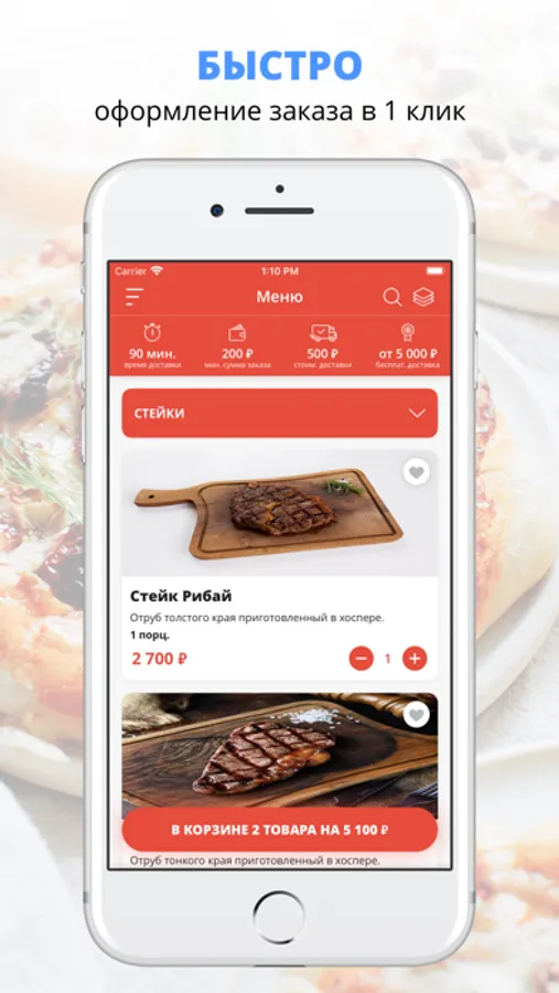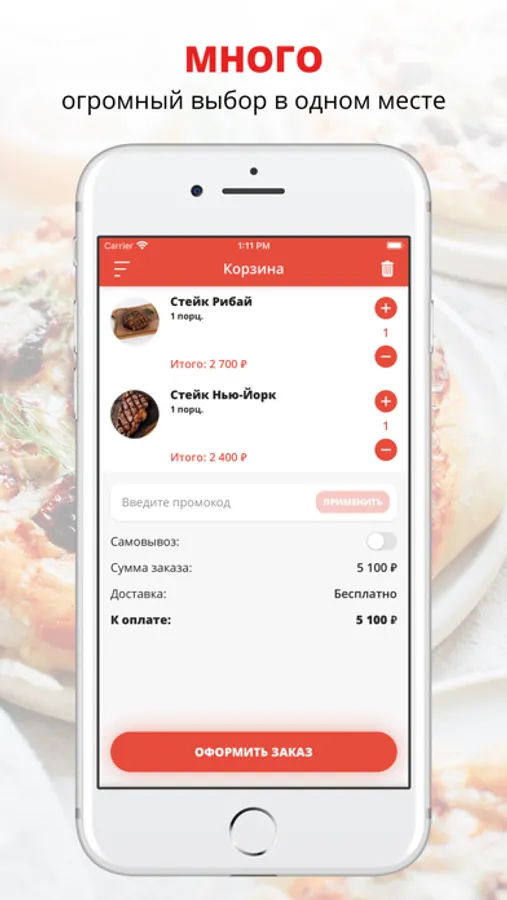 В приложении вы можете всегда оформить заказ и быстро получить выбранные позиции меню, а также быть в курсе специальных предложений.
